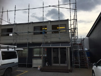 入口の長尺シートも貼り終わり、来週はクロス、床、電気工事の仕上げで完了です。